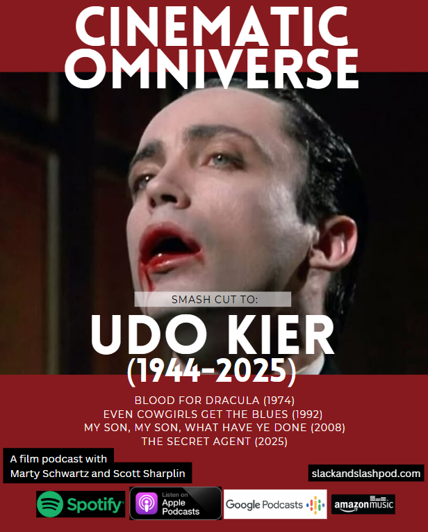 Giant thumbs, killer attack legs, hymen blood, and the Face of God on an oatmeal tin. Marty and Scott explore some deeply bizarre corners of the omniverse — and find some hidden gems — as they get to know the inimitable Udo Kier.